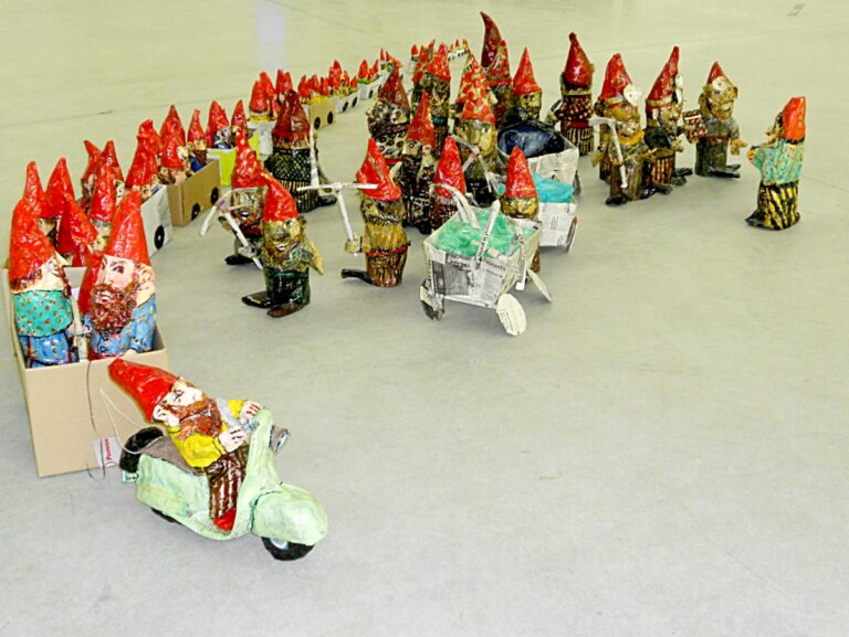 Nains (Dwarves) Véronique Champollion Since 2004 Acrylic on glued newsprint paper Single sculptures: height between 6 and 45 cm Installation: dimensions variable Since 2004 Véronique Champollion creates dwarves made in papier-mâché. In 2006, she presented a first installation in “the Room” – a performances space run by Carla Bertola and Alberto Vitacchio in Turin, Italy. … Continue reading Artwork of the Month / December 2025