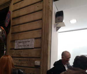Starting already outside the “occupied” gallery, the visitor has to pay attention not to miss details: “Milestone” by Underground Movement, is the historic marble sign of the D.C.C.A. from 2003; “Radio Desertion” is a sound-installation by the Manifesto Collective, where thinkers, artists and activists replying to two questions around desertion and “Replacement” by La Société Spectrale captured the galleries historic inscription at the glass door.