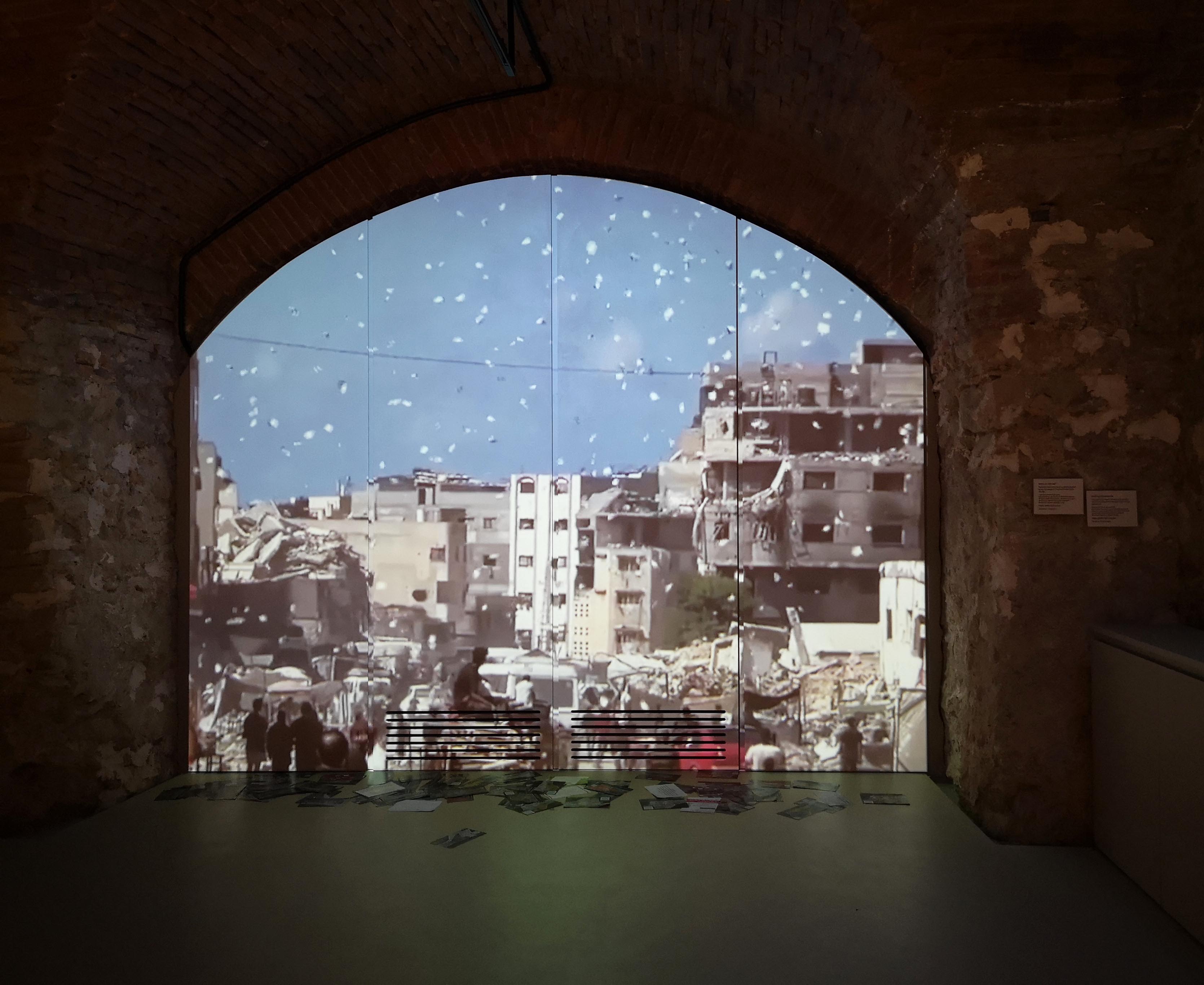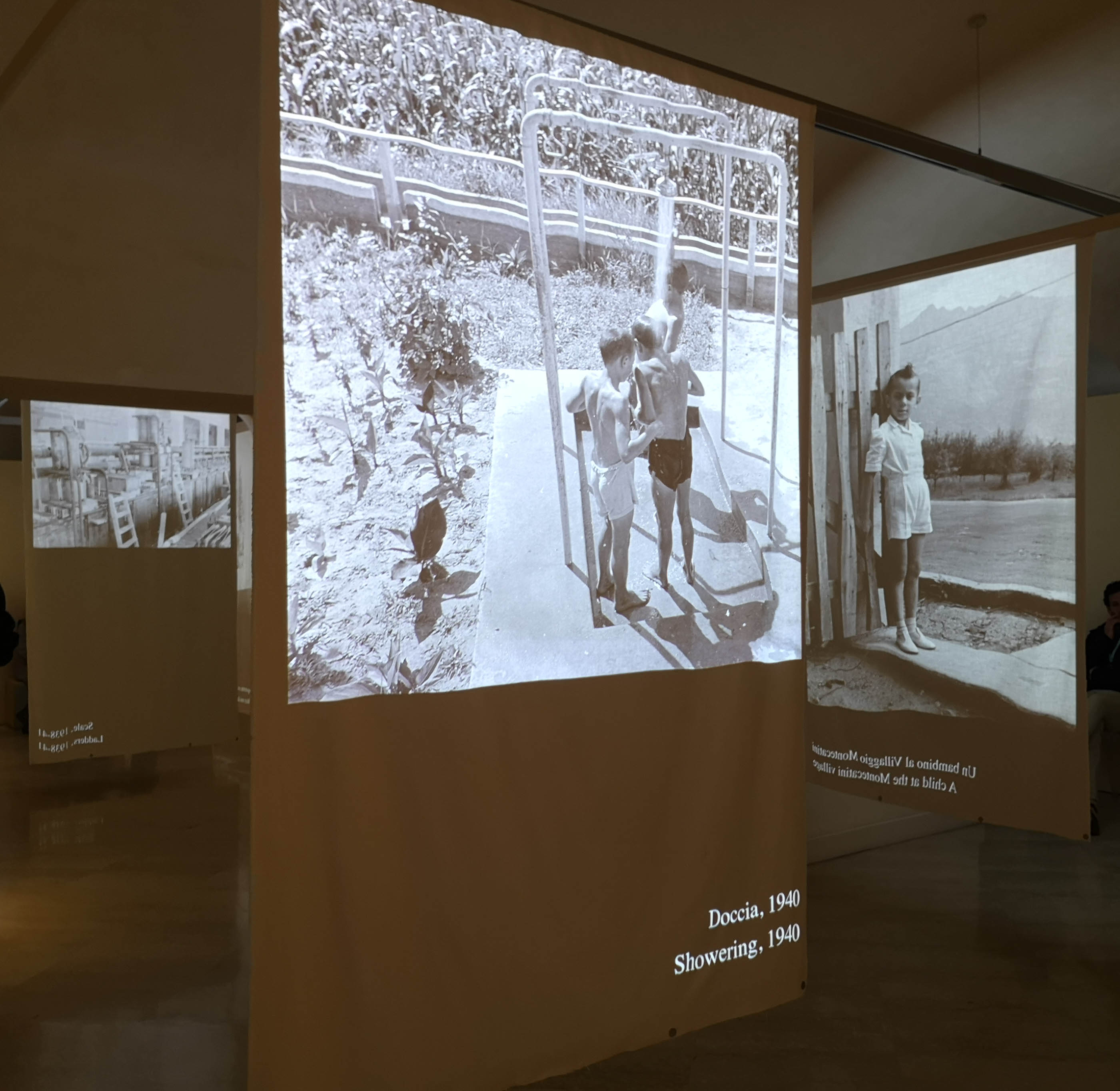 Matei Bejenaru’s “Prut” is a long-term project, too. Since 2011, he features the region of the Prut River in Rumania. Here, the rural world aligns to contemporary conditions, like the disappearance of horse carriages, pavement of streets, new private and public buildings. This landscape not only changes due to the “normal” requirements of modernisation, but also because of the system change in Romania after 1989. Still, some old characteristics like ancient plates are visible. However, the series documents the vanishing of others. The research agency “Forensic Architecture” based at Goldsmiths, University of London, investigates already disappeared settlements. In the exhibitions “Looking for Palestine” they outline the destruction of the Palestine village al-Dawayima in October 1948 by Israeli Forces. Maps, aerial photographs and contemporary witness allowed to create an animated landscape model. Furthermore, videos and photos document the massacre and the mass expulsion. Additionally, the exhibition makers, draw a line to the present of continuing displacement. (until 11 January 2026) Recalling HomeMoira Ricci invites us with “Quarta casa” to the Maremma region, where she was born and also to Milan where she lived. In the entrance, a sculpture of herself lies buried under a landscape starting at her feet in the rural Tuscany to finish on her head with the impressions of the second largest city of Italy. “Dove il Cielo è più vicino” (Where the Sky is closer) in the main hall of the MAMbo, is dedicated to the people of the sparsely populated Maremma and their relation to nature. In large images she portraits the inhabitants and the architecture, not without erasing windows and doors of the building. Another chapter features mysterious stories circulating in the region.