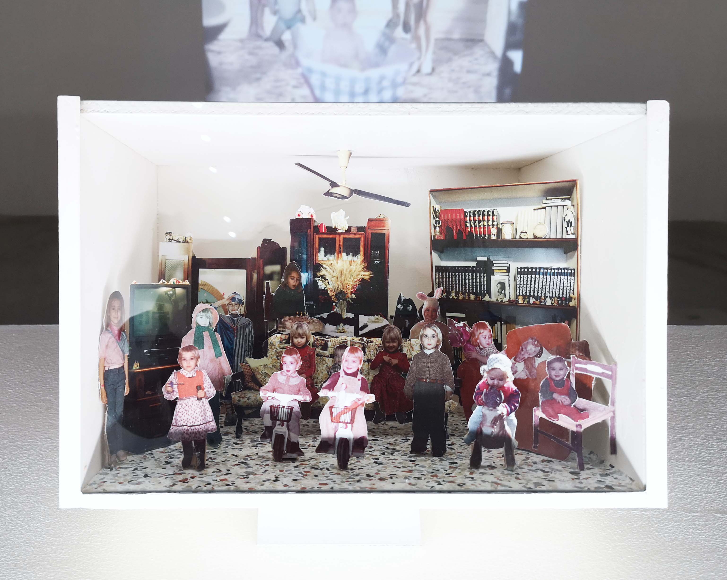 It becomes more private by family photos. “20.12.53-10.08.04” seemingly reconstructs the life of Moira Ricci’s mother: family photos, well-known and similar in many European photo albums. However, besides the mother, one person appears permanently. It is the artist herself. Nearby, one can listen to the sound of Irene Cara’s “What a feeling”, not only the soundtrack to the early 1980s cult film “Flashdance” but also to the home videos of Ricca dancing, registered by her mother. Moreover, with “Ioc. Collecchio 26” she reconstructed her parents’ house like it was in her childhood. She was inspired to this three-dimensional photo collages, by the family’s decision to transform the house. (until 11 January 2026)