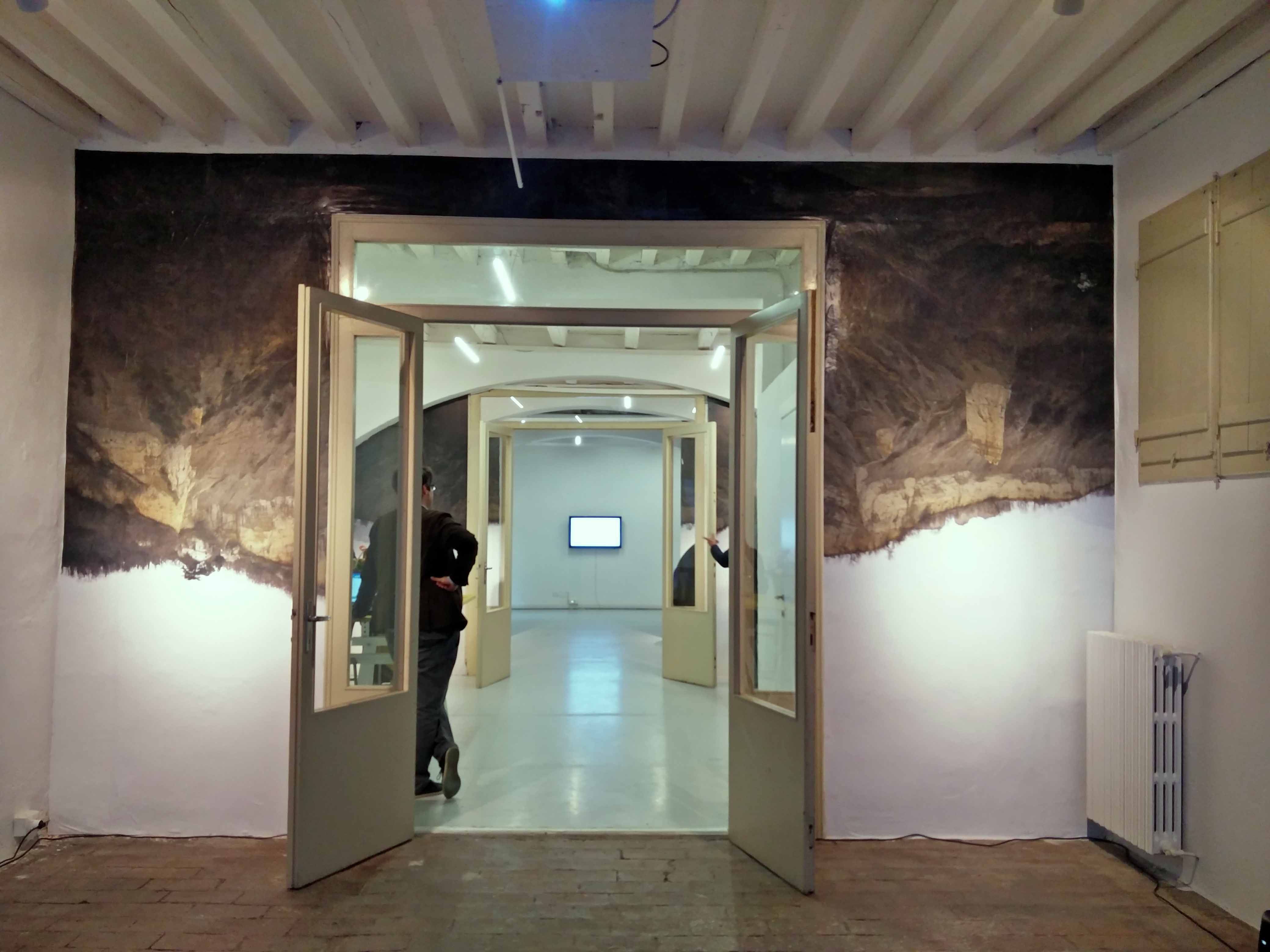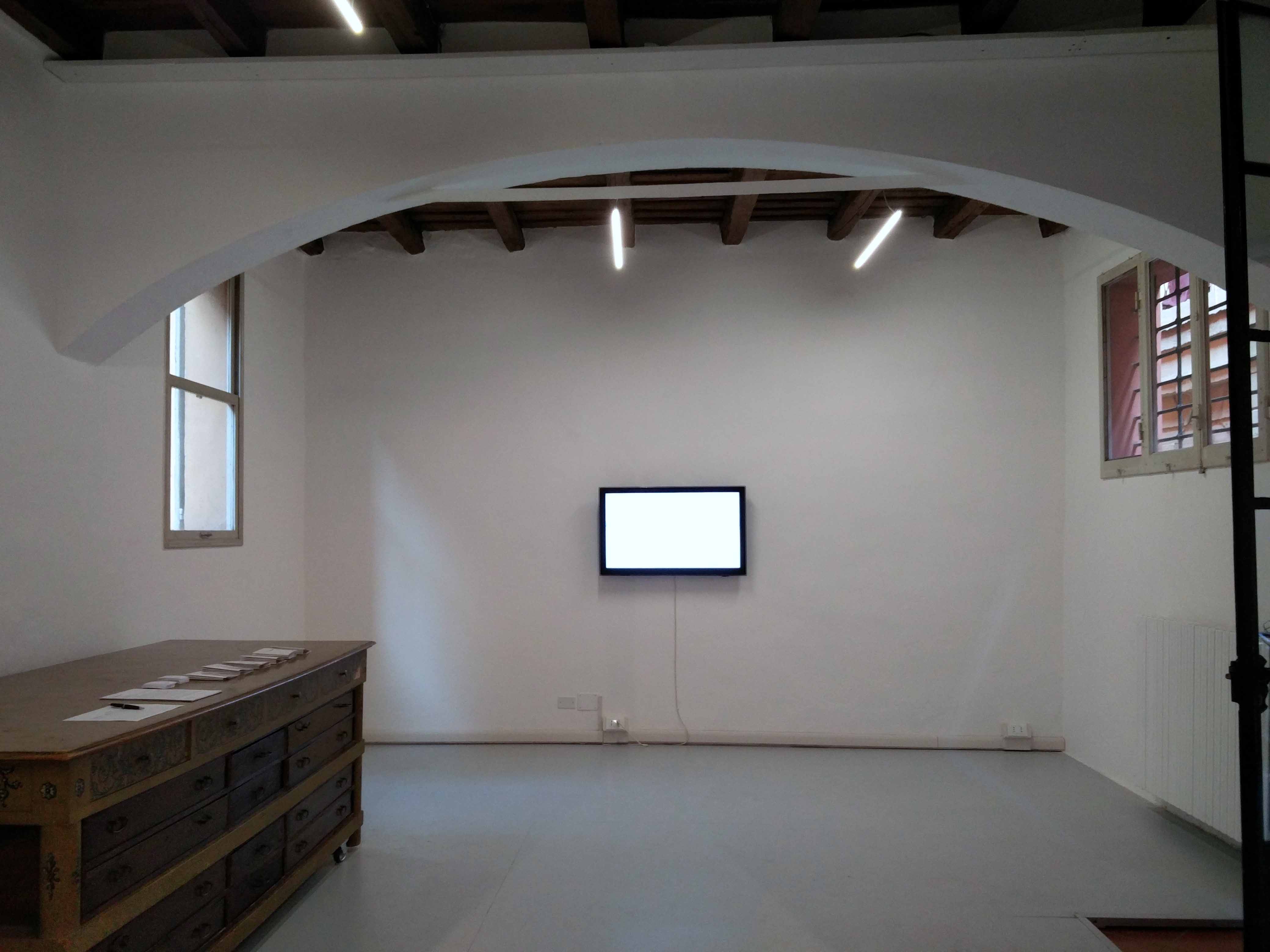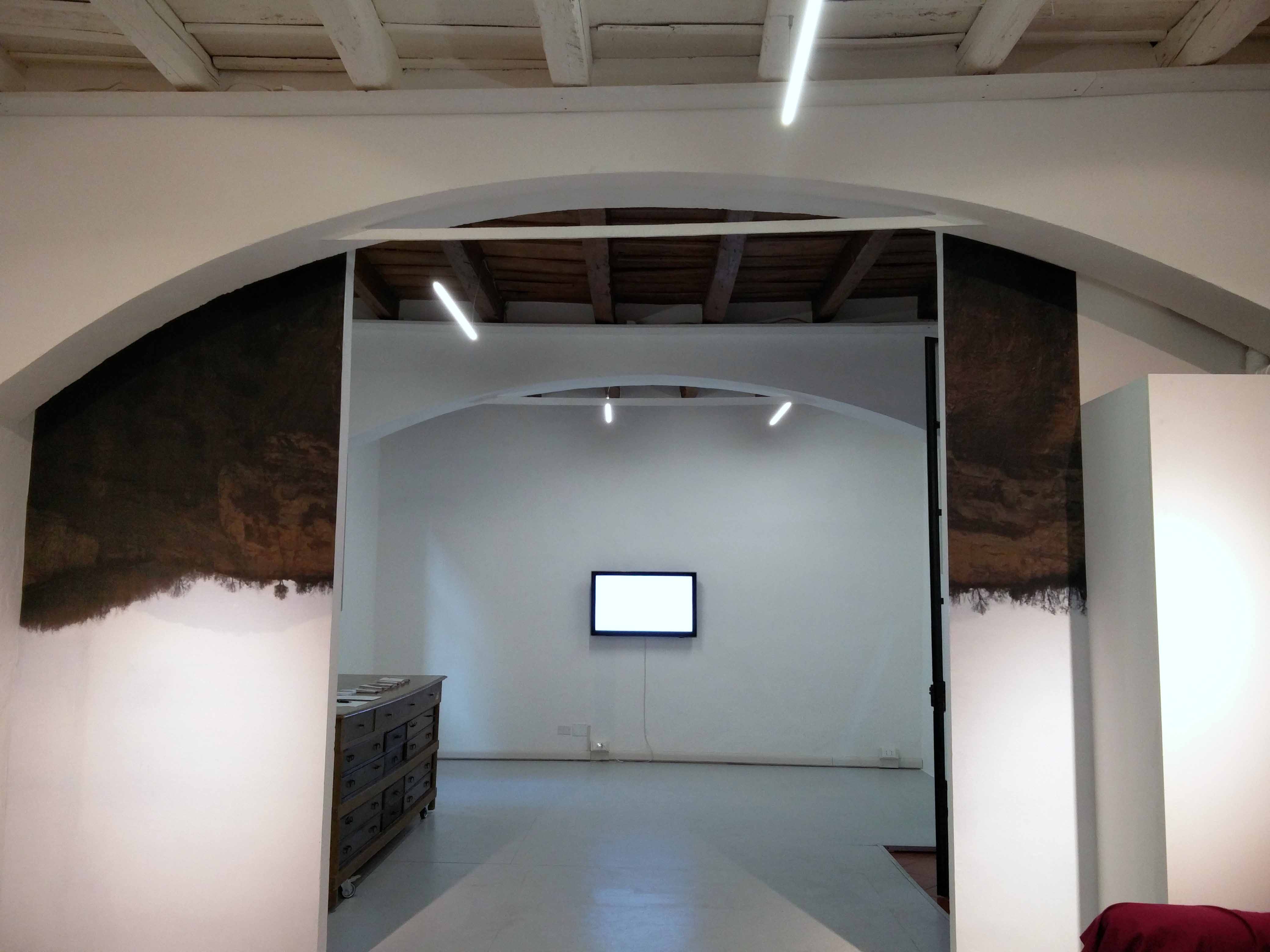 Last week the association Adiacenze opened its new exhibition space with the site specific installation “Se il cielo fugge” (If the sky flees) by Irene Fenara. On view are two videos and a wall painting by the artist. Francesco Privato completed the work with a sound installation.