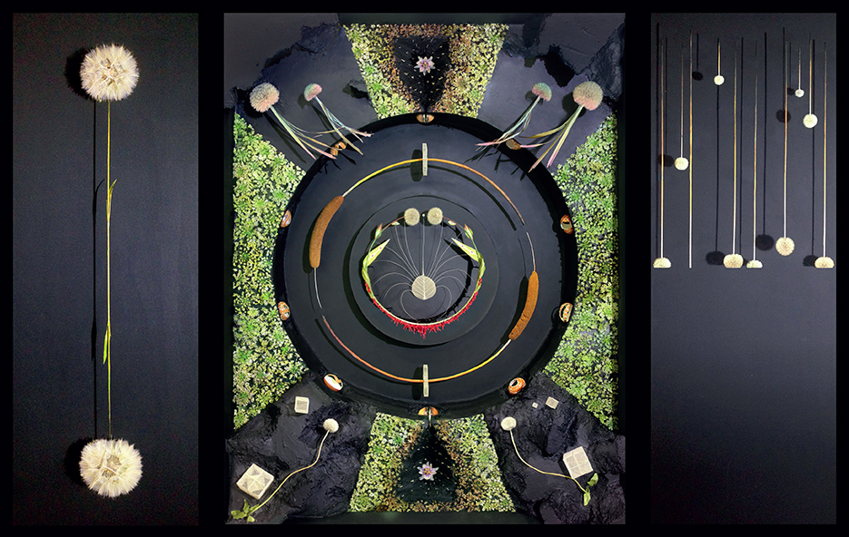 In particular, the interview by Matteo Galbiati reveals the background of L’orMa’s oeuvre. He is questioning the cohabitation between natural and the virtual world. For him, the virtual sphere is the most concrete of the concrete. It is existing but it does not exist. This conception gets obvious in “Il Giardino delle delizie” (The Garden of Earthly Delights), a reinterpretation of Hieronymus Bosch’s painting, which he created on the occasion of the artists 500th date of death. For the spectator the triptych could have a virtual aspect like a 3D-image. Nevertheless, all the used materials have a natural origin.