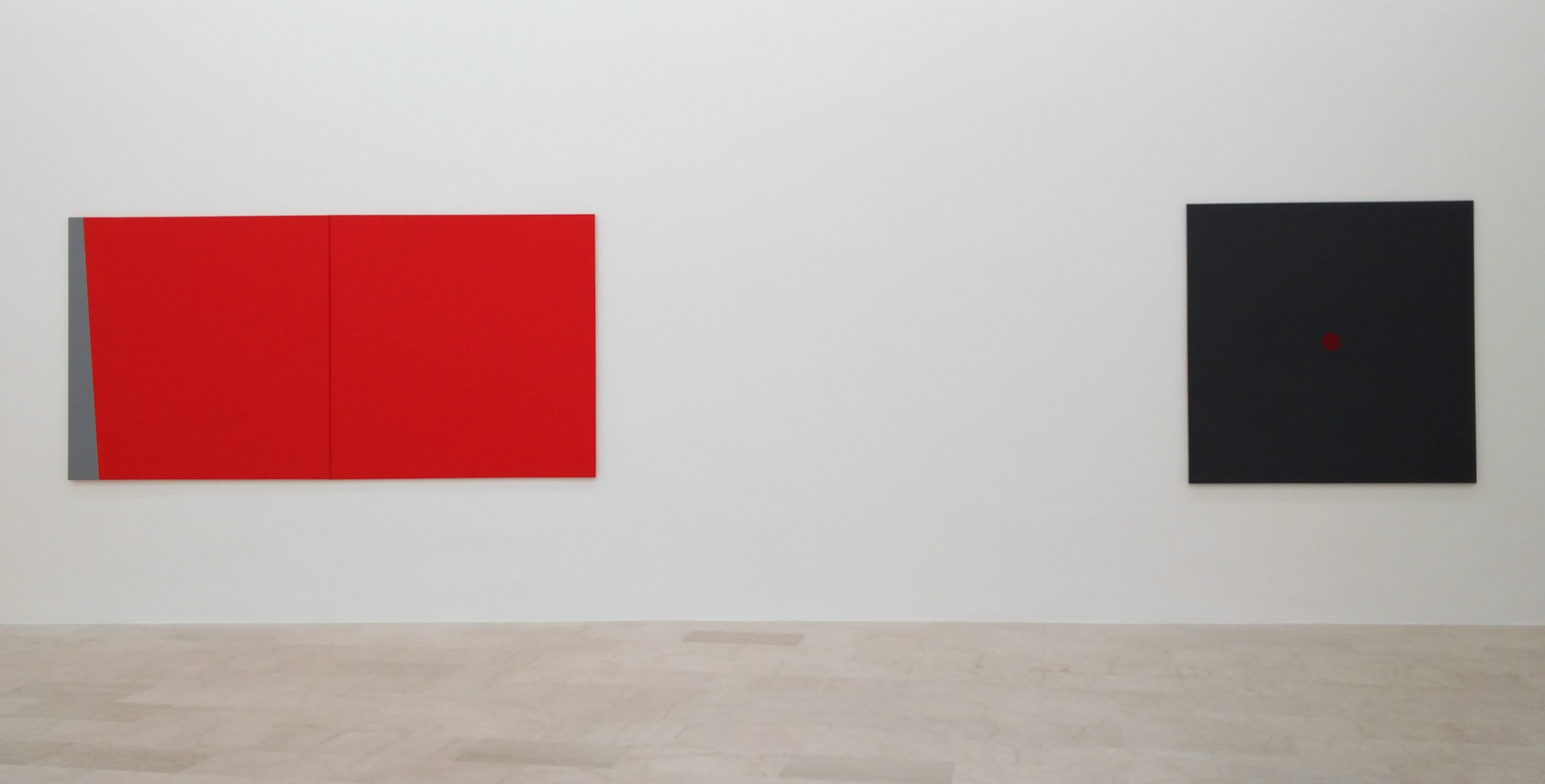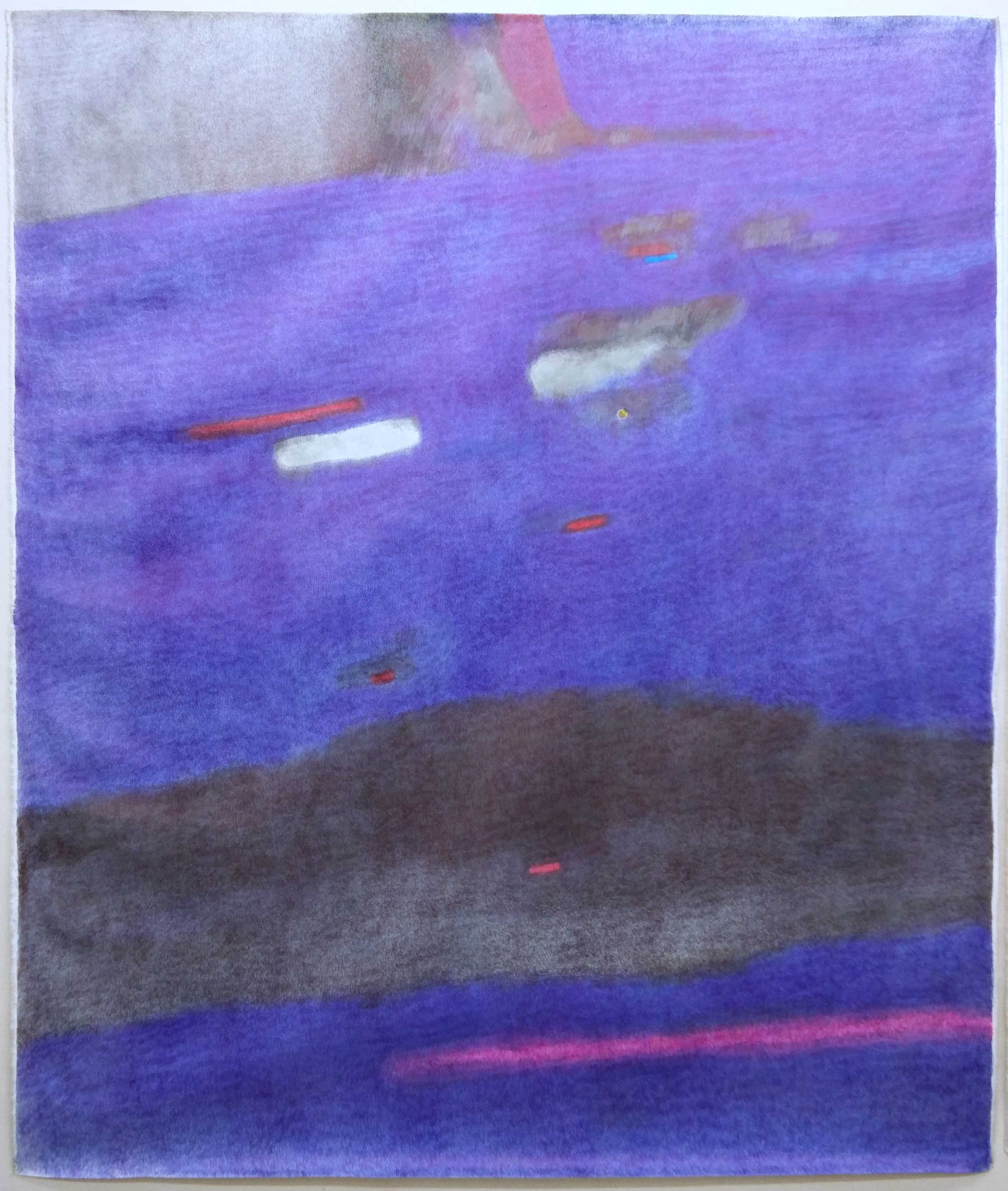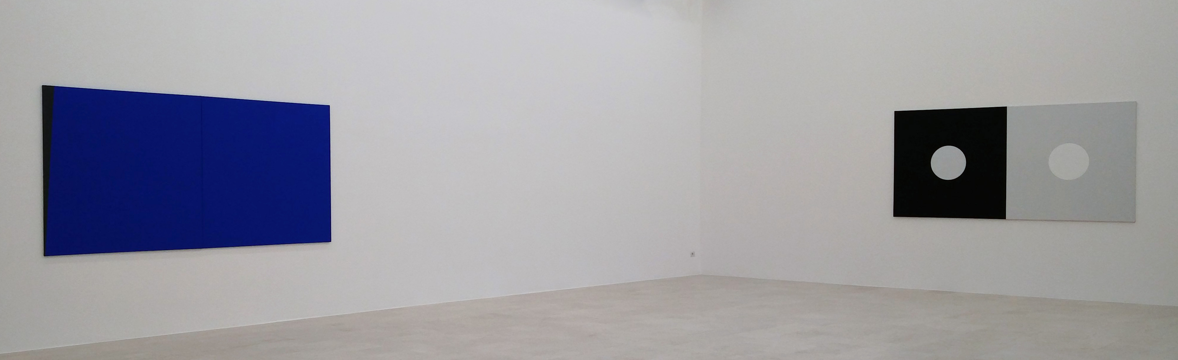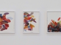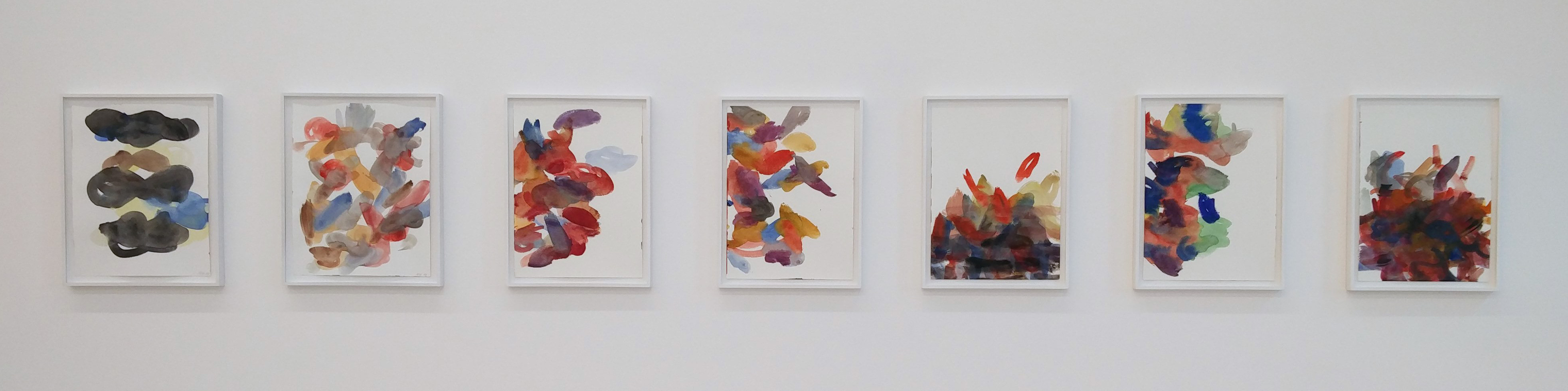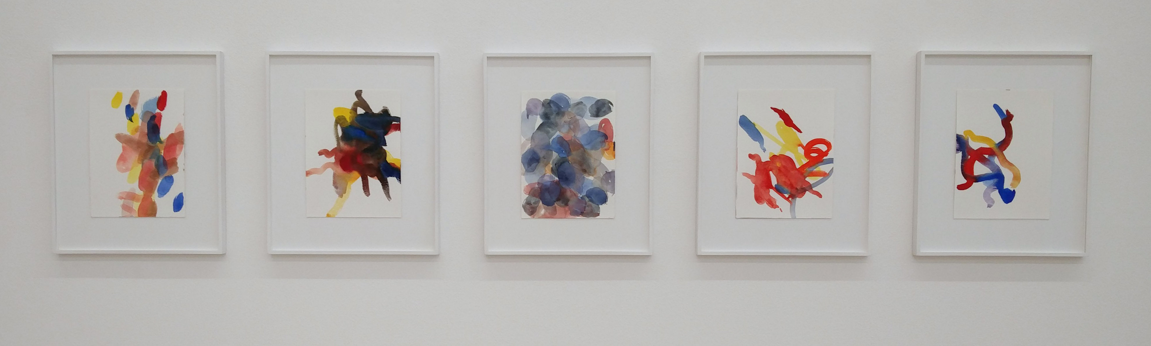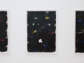 “Antifona” is the second solo exhibition by the Slovakian artist Milan Grygar at P420. It could be seen, as sequel of the first. In 2014 were early paintings from the 1960s and 70s on view. Currently, more recent oeuvres are presented. All creations have in common, that they relate the visual image to sound, as this is the constant in Milan Grygar’s work since the mid-1960s. In the first room, there are mainly watercolour paintings in small format. An exception is made by three bigger black dominated compositions in mixed technique called “Antifona”. Not by surprise, the term is borrowed from music and is generally used for a call and response style of singing. The second room is like a clash of drums: four large-sized canvases pervade the space by their intercommunication. By the selection of the works, respose is taken literally.