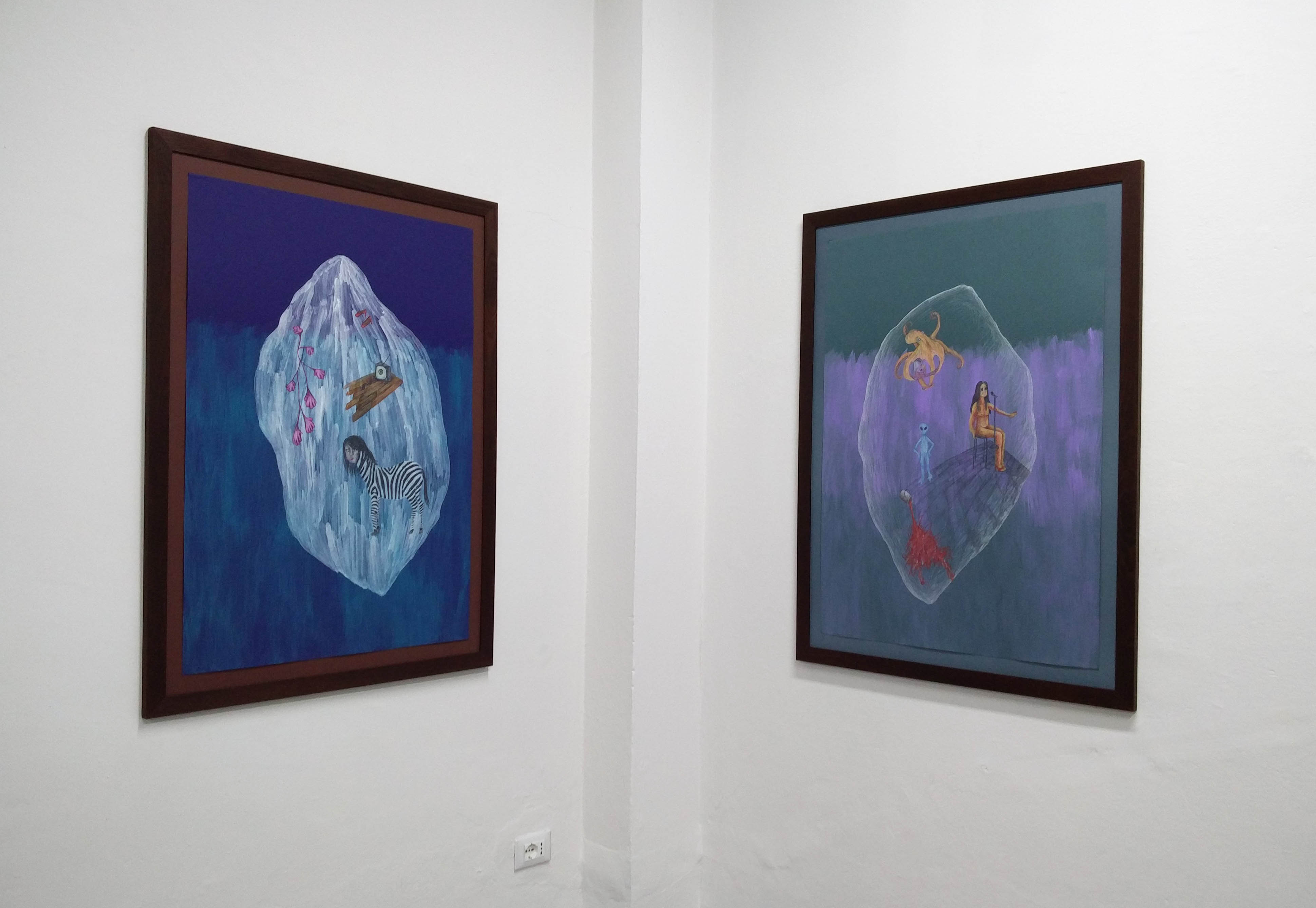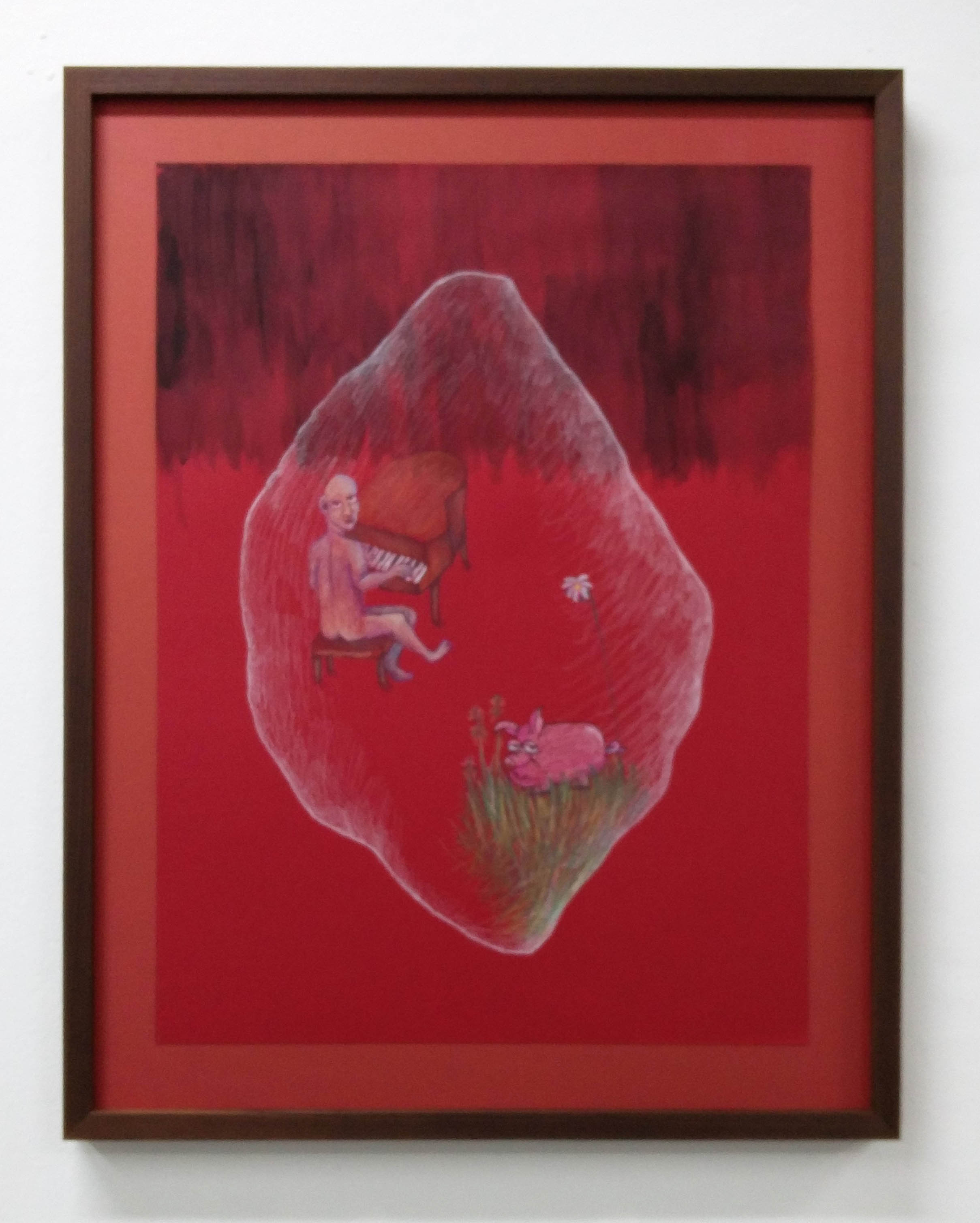 In “Submarine Society” Ann Hirsch carries us off in two different underworlds. The first part of the exhibition “Iceberg series” shows through drawings the secret desires of the artist. Like a Freudian iceberg only the tip of the consciousness sticks out. In the lower section of the bubble are the ideas of her unconscious visible.