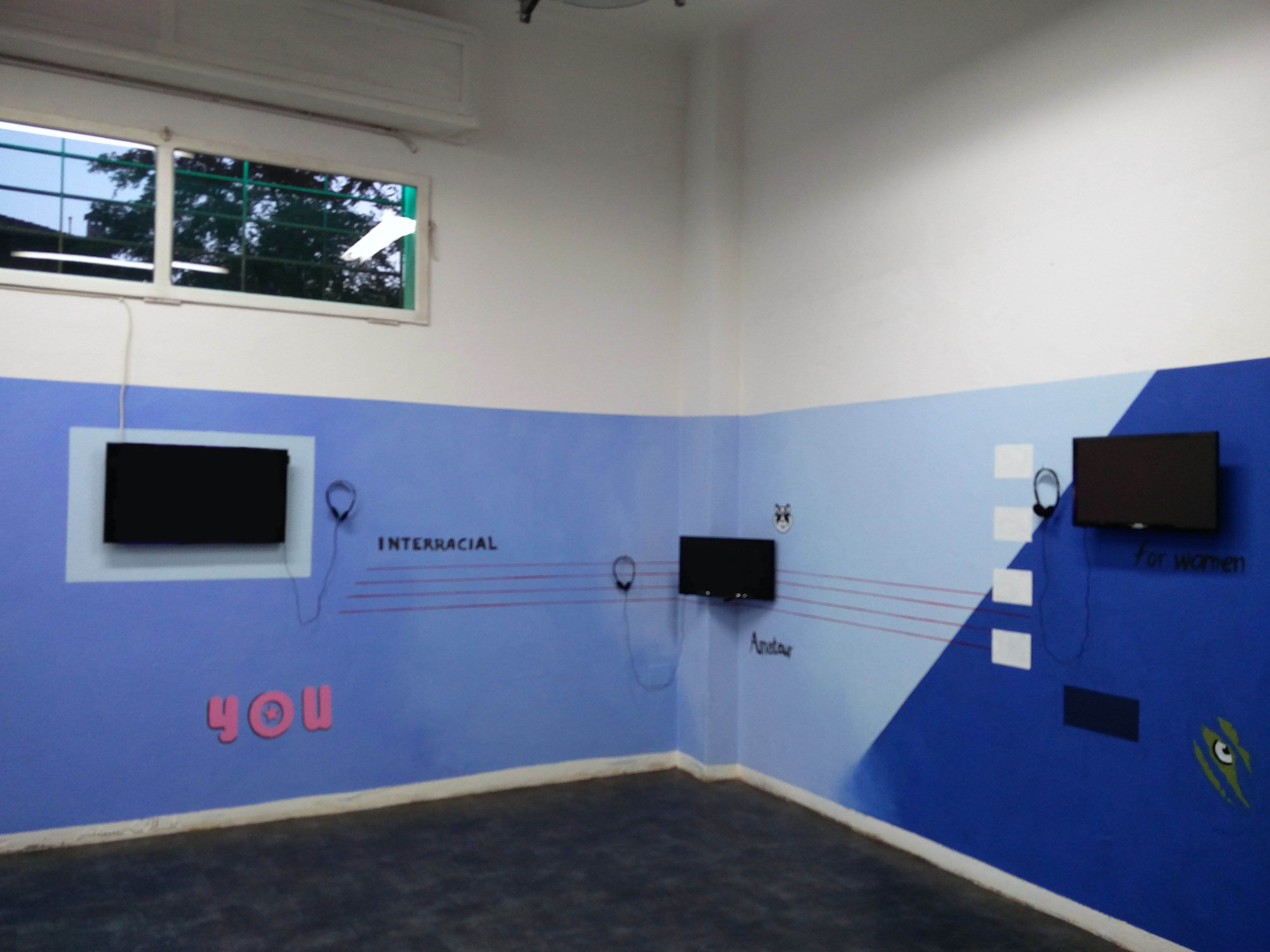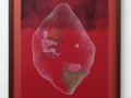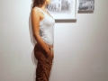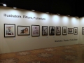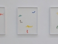 The exhibition “You touched me” is an accumulation of oppositions. Formally, there are two kinds of techniques: “painting” and “photography”. “Painted” on unstretched canvas the colour application is made by different tools, in principal by pen and pencil. Sometimes the artist adds oil stick and rapidograph (ink pen). Due to the large size of the surface, it is a long process and, for the artist, part of the artistic creation. The result are signs, which could be explained by themselves. Despite the hard tools like pen and pencil, the outcome has a smooth effect.