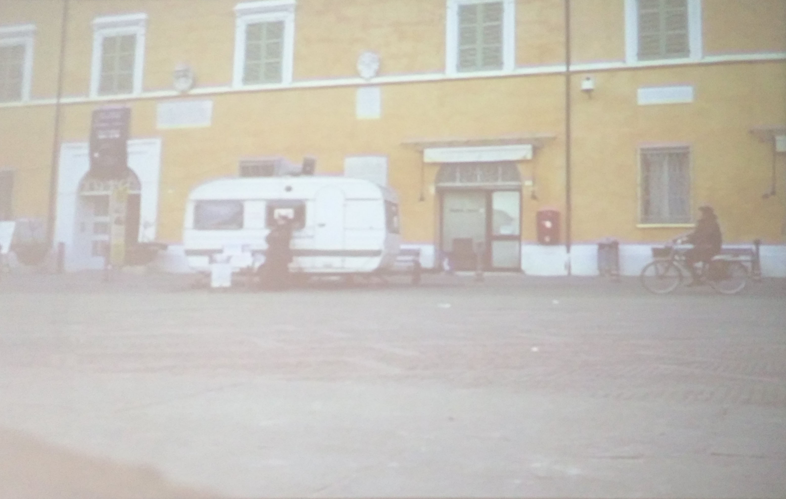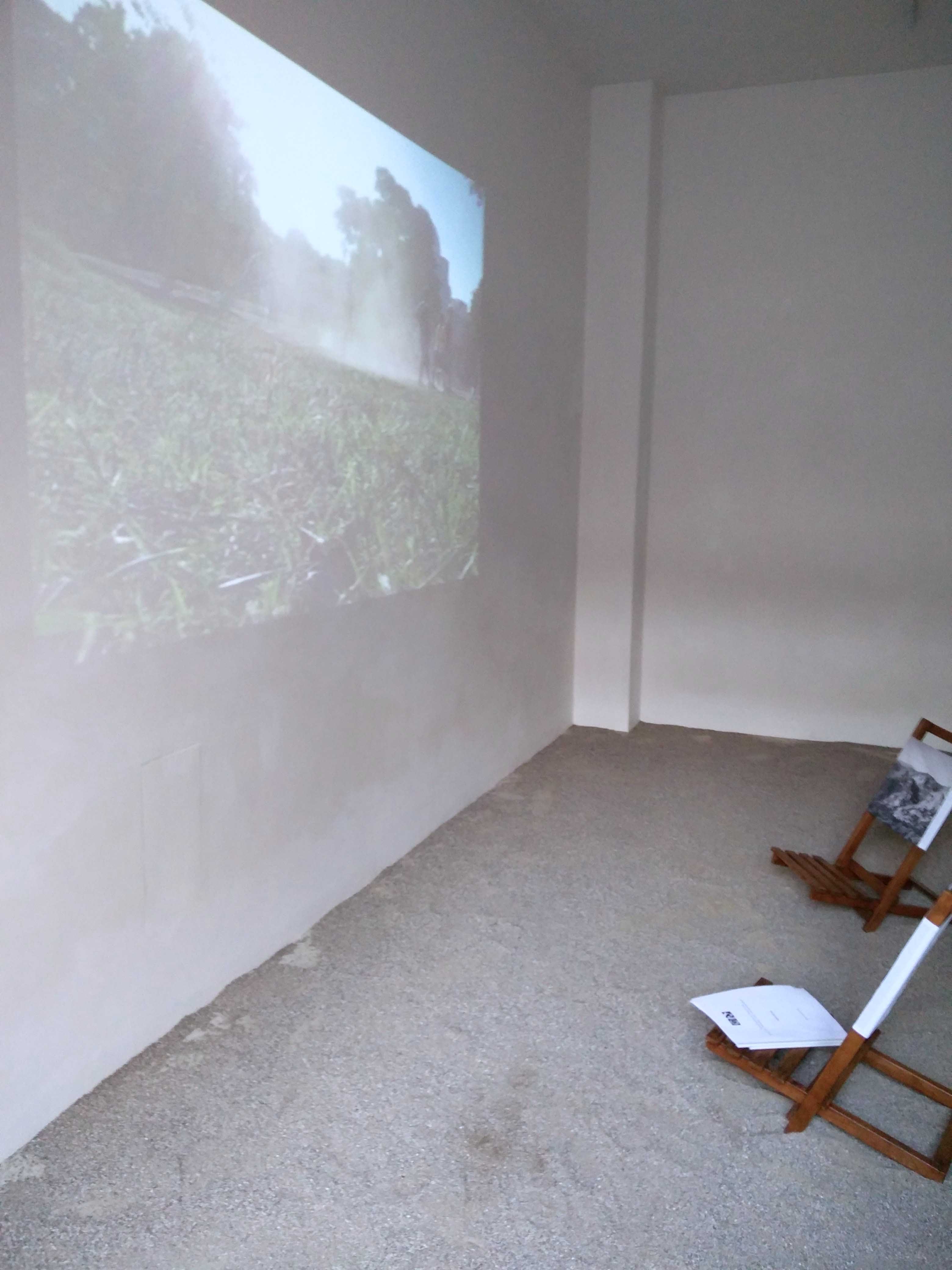 “The long Street of Sand” is a video-project curated by “Pleasant Journeys into Faraway Lands” which analyses the intersections between touristic and artistic images. According to the exhibition title, the floor of the showroom is spread with sand and there are two camping chairs in front of the screen. There are video-projections by the artists Marco Casella, Luca Coclite, Mimì Enna, Melania Fusco and Stefania Galegati Shines on view.