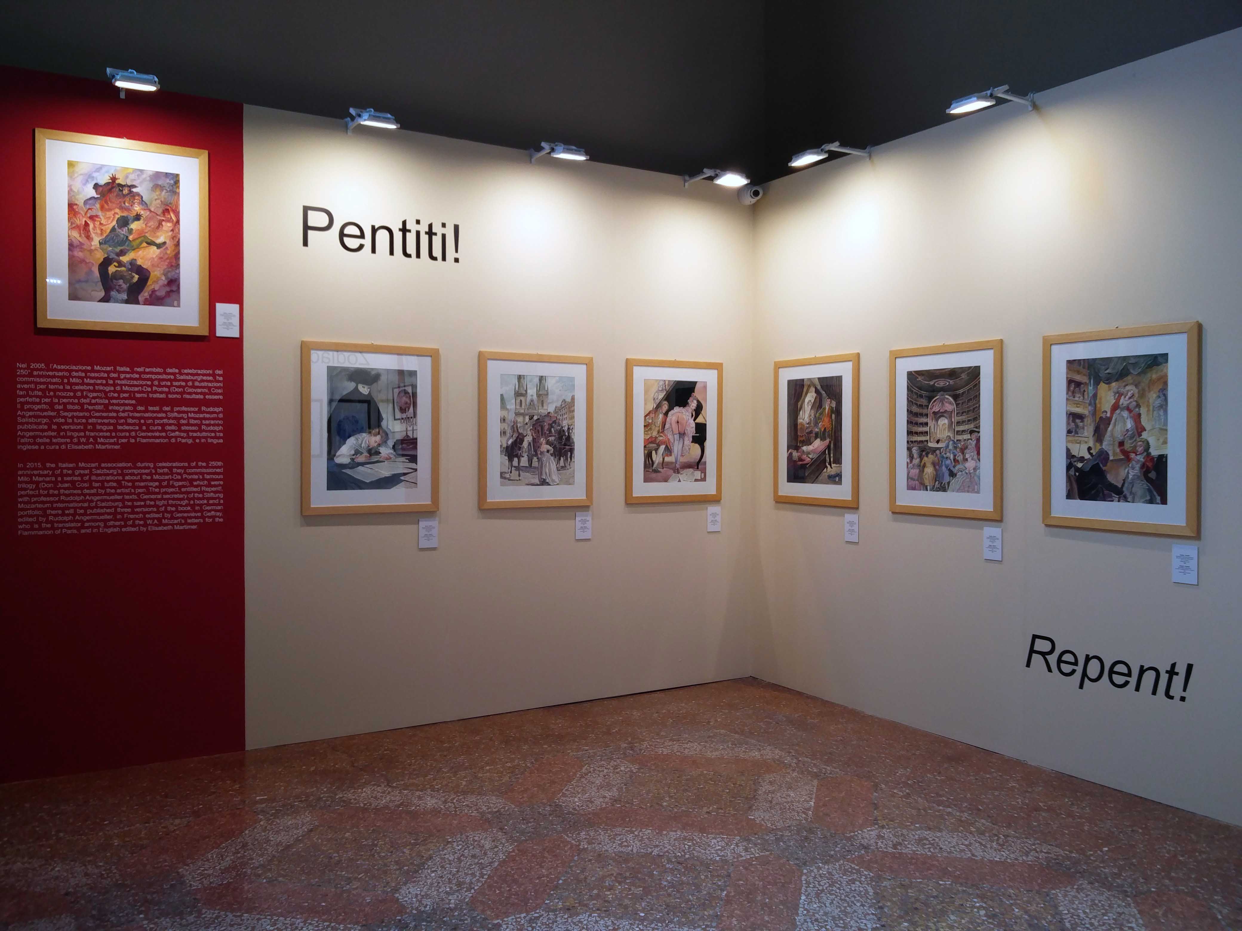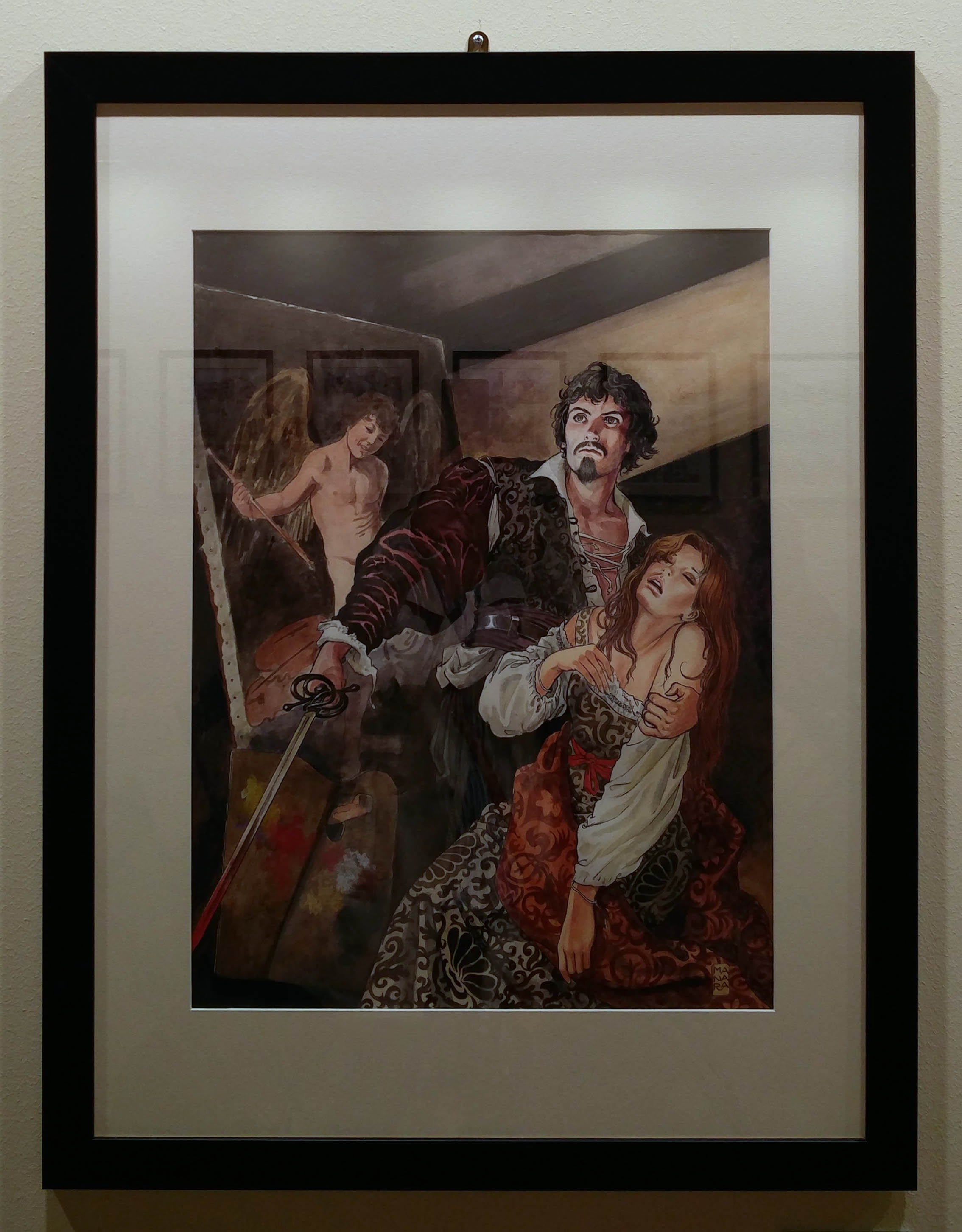 Milo Manara is an internationally known cartoonist and illustrator. First working on Fumetti neri series (black comics), he later created as well political sketches and historical novels inter alia about the Borgia (2004-2008) and more recently Caravaggio (2014-2017). In the exhibition at the Palazzo Pallavicini there are now around 130 works in seven sections on view, which illustrate Manara’s oeuvre as well as painter and portraitist. Illustrations and drawings testify his collaboration with Federico Fellini and Hugo Pratt. Until now, unpublished watercolour-paintings of Brigitte Bardot, created in the last years, refer to his role as father of erotic fantasy. Self-evident, extracts of the Mozart-series (2005) could not be missing in a historical place like the Palazzo Pallavicini, where the composer himself performed in his time.