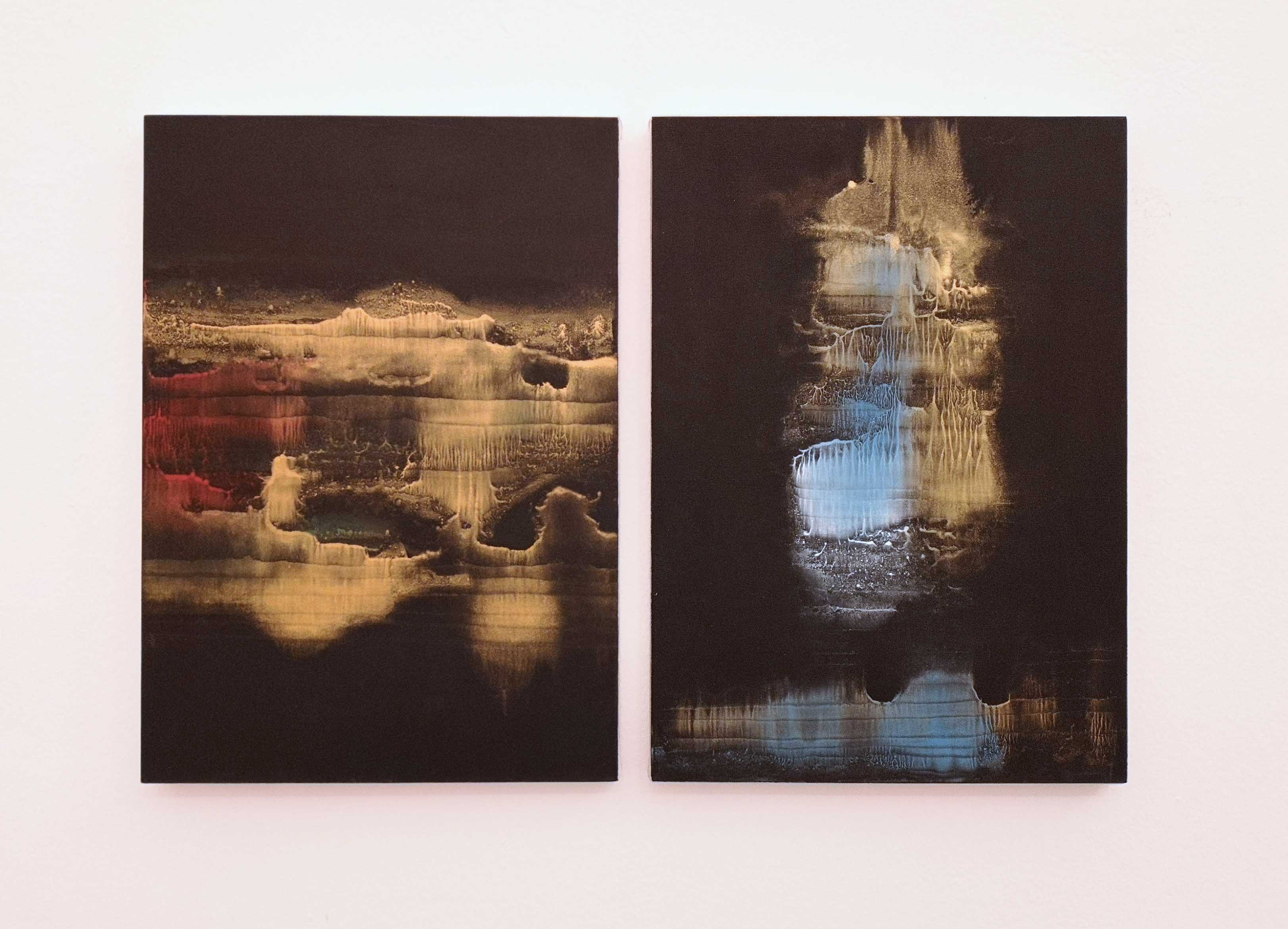 A conception of art which includes the image before and the painting afterwards. Additionally, it glances to additive and subtractive colour synthesis to represent light.