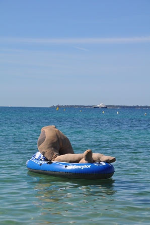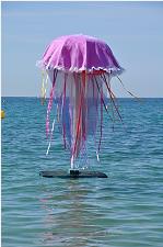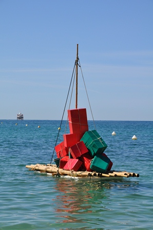 All dieses und noch viel bizarrere Skulpturen gehören zu den „Bains d'Art - Sculptures flottantes" (in etwa: Bad der Kunst - Schwimmende Skulpturen). Die Ausstellung wurde von der Künstlergruppe NO-MADE initiiert, um die Tradition der ART MOBIL fortzusetzen. Es ist eine Installation von ephemeren Kunstwerken, d.h. in diesem Fall: eine Ausstellung für nur einen Tag und dies an einem recht ungewöhnlichen Ort, am Strand bzw. im seichten Badewasser. Das erstaunt das Publikum!