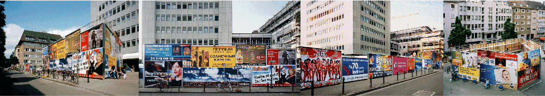 Devant l'entrée principale de l'hôpital, les artistes de FEHLSTELLE installaient 31 affiches monumentales de publicité, provenant de Géorgie, d'Espagne, du Portugal, d'Estonie, de République Tchèque, de Russie, du Maroc, de Chine et de Turquie.