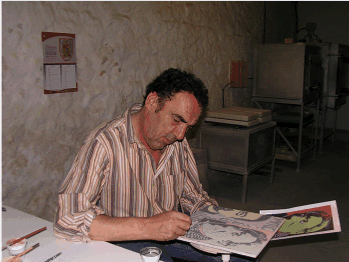 Renaud Lembo, céramiste à Vallauris (Alpes-Maritimes), est spécialisé dans la « Céramique signalétique ». Il se consacre à la fabrication de plaques signalétiques de rues et de propriétés, puis dans le traitement et le transfert d'images sur panneaux muraux. En conséquence il a réalisé plusieurs œuvres dans l'espace public. Pendant notre entretien dans son atelier, il émaille une plaque qui fait partie de son dernier projet avec l'artiste Dominique Landucci, pour un passage à Carros (06).