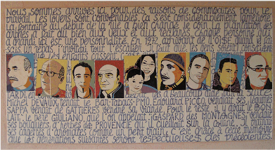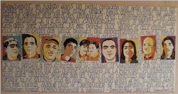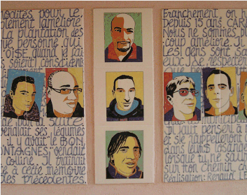 Dominique : Quant aux textes, à partir de leur questionnaire, j'ai pris des phrases simples, courtes, générales, poétiques et ayant un intérêt collectif. J'ai mis bout à bout ces phrases faisant un texte général où chacun reconnaissait ses bouts de phrase anonyme.